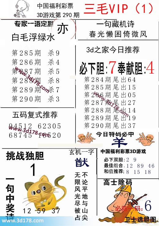 3d第2019290期三毛VIP详解: