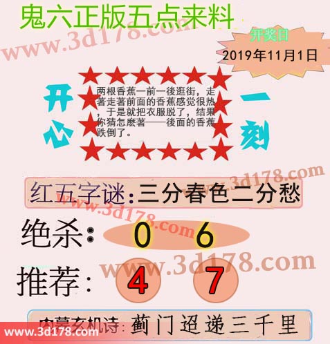 福彩3d第2019291期鬼六五点来料: