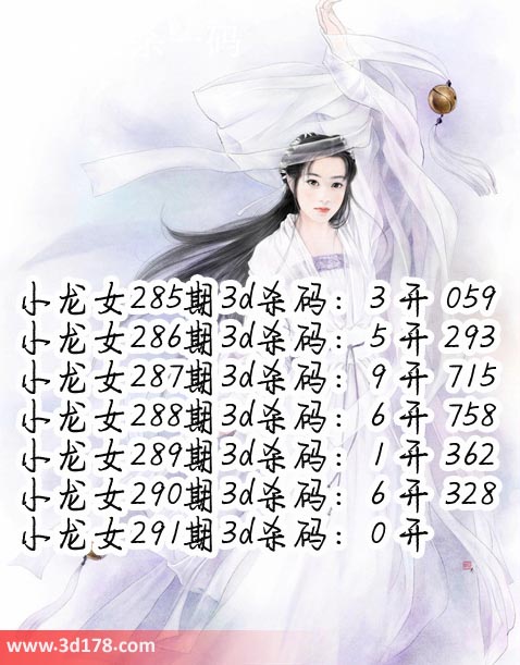 小龙女290期3d杀码:6 开 328