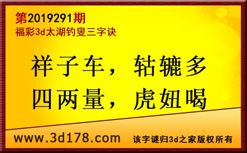 3d第19291期太湖字谜:祥子车,轱辘多,四两量,虎妞喝