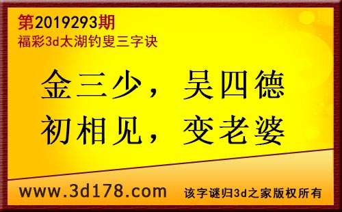 3d第19293期太湖字谜:金三少,吴四德,初相见,变老婆