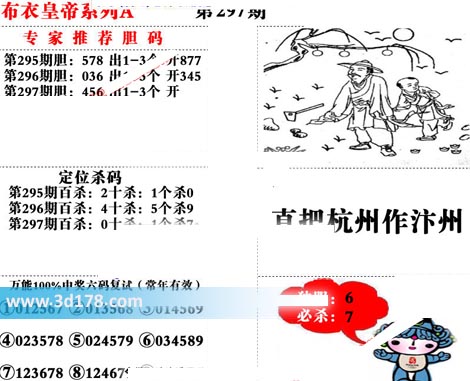 福彩3d第2019297期布衣皇帝A版布衣专家独家推荐: