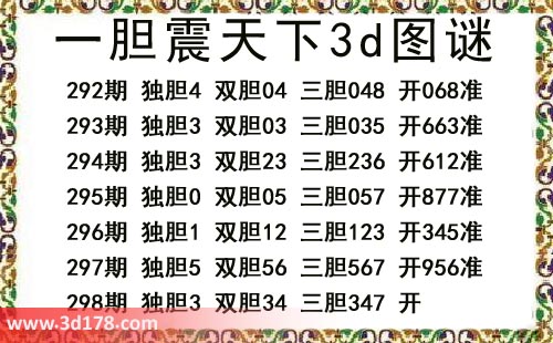 一胆震天下三胆图库由3d之家3d图库频道原创,仅供彩民参考,温馨提供。