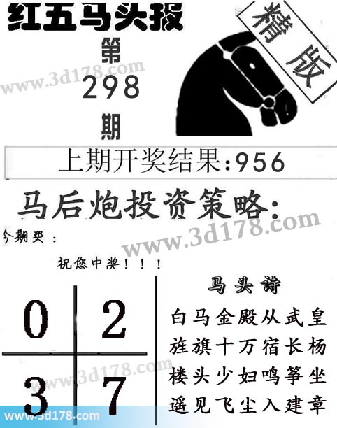 3d第2019298期红五马头报本期马头诗详解:
