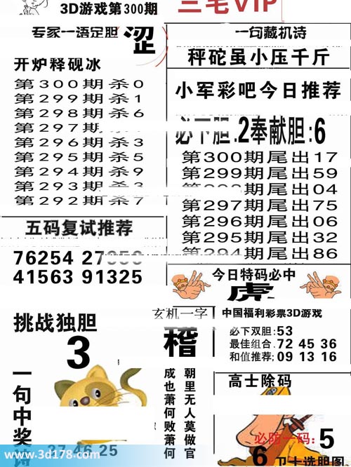 福彩3d第2019300期三毛VIP: