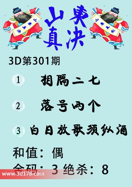 福彩3d第19301期山东真诀图如下所示:
