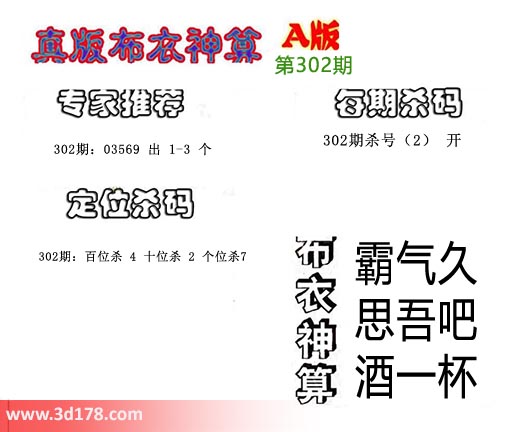 3d之家布衣图库之布衣神算图第2019302期详解: