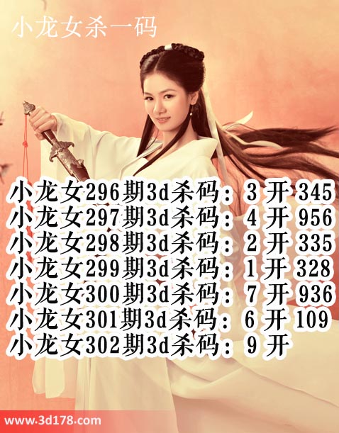 小龙女301期3d杀码:6 开 109