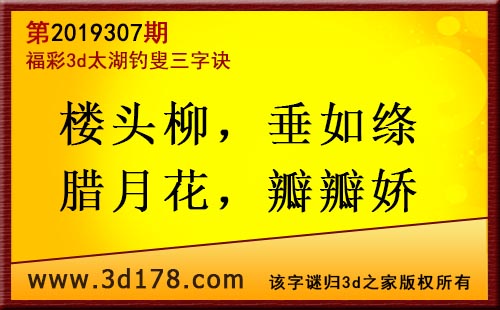 3d第19307期太湖字谜:楼头柳,垂如绦,腊月花,瓣瓣娇