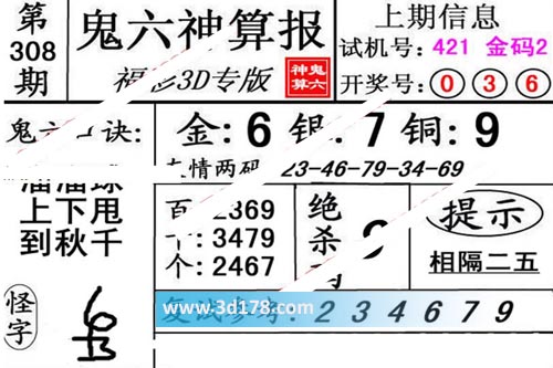 3d第19308期鬼六神算报为您推荐鬼六口诀: