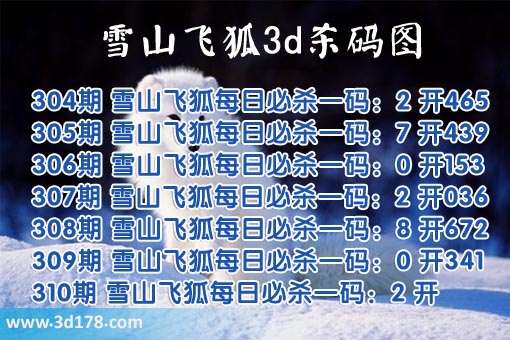 第2019310期福彩3d雪山飞狐杀号分析: