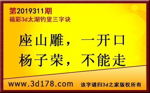 3d第19311期太湖字谜:座山雕,一开口,杨子荣,不能走