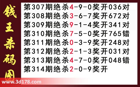 近期3d钱王杀码具体详情: