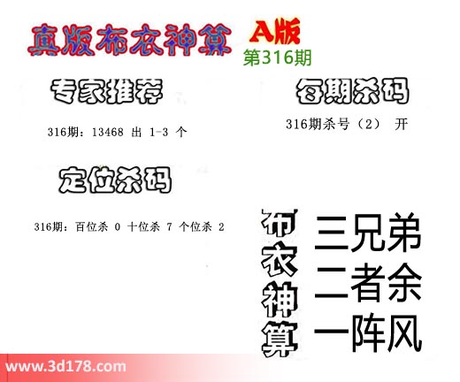 3d之家布衣图库之布衣神算图第2019316期详解: