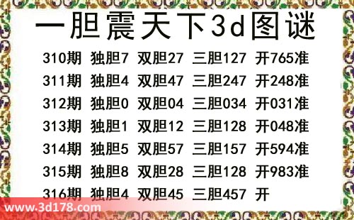 一胆震天下三胆图库由3d之家3d图库频道原创,仅供彩民参考,温馨提供。