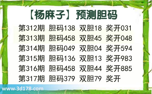 杨麻子胆317期杨麻子胆码推荐: