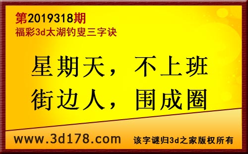 3d第19318期太湖字谜:星期天,不上班,街边人,围成圈