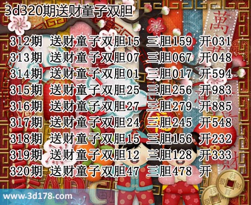 下面我们一起来回顾一下3d之家胆码图送财童子三胆近期推荐详情: