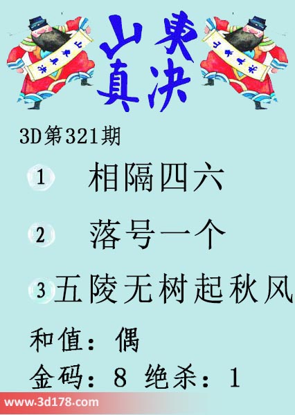 福彩3d第19321期山东真诀图如下所示: