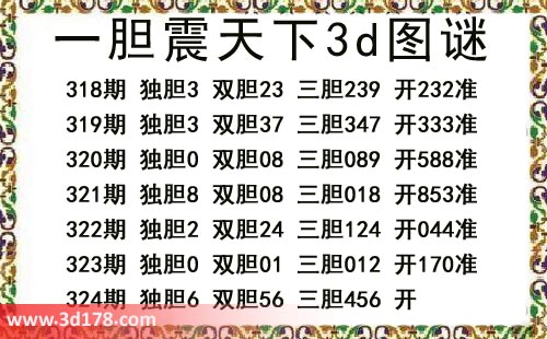 一胆震天下三胆图库由3d之家3d图库频道原创,仅供彩民参考,温馨提供。
