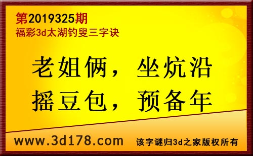 3d第19325期太湖字谜:老姐俩,坐炕沿,摇豆包,预备年