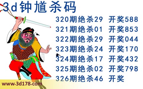 近期3d钟馗杀码的杀号详细如下: