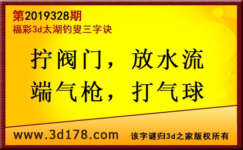 3d第19328期太湖字谜:拧阀门,放水流,端气枪,打气球