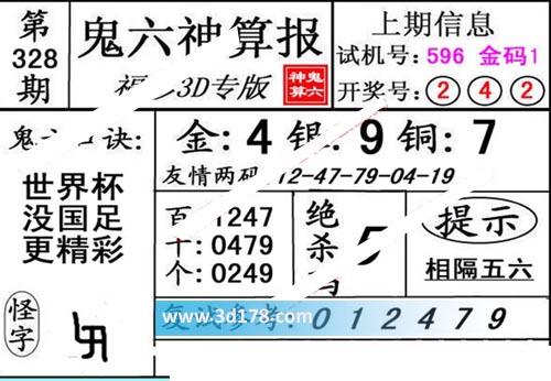 3d第19328期鬼六神算报为您推荐鬼六口诀: