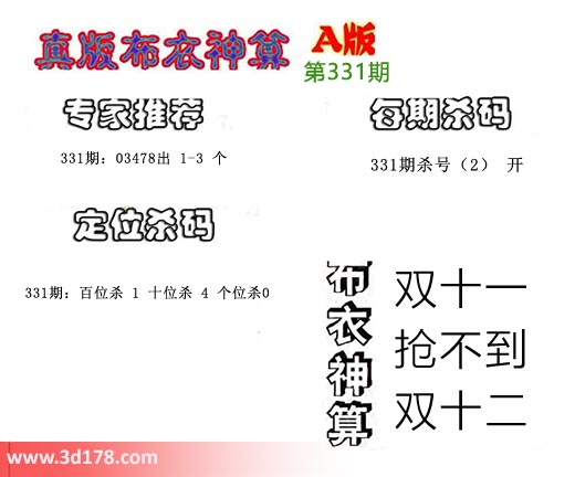 3d布衣神算第331期定位杀码: