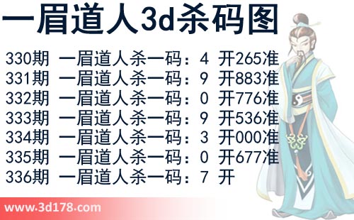 该一眉道人3d杀码图由3d之家3d图库频道原创,仅供彩民参考,温馨提供。