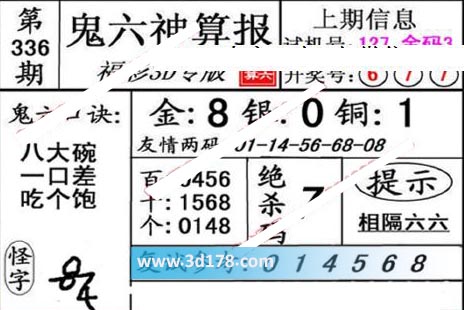 3d第19336期鬼六神算报为您推荐鬼六口诀: