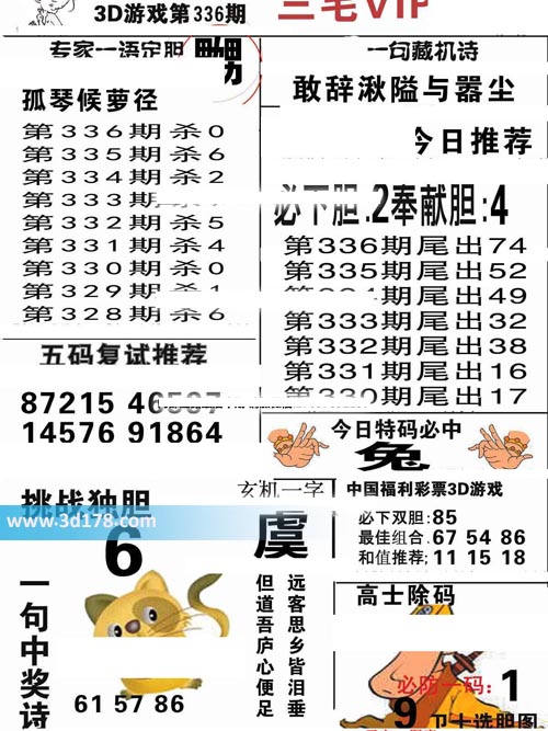 福彩3d第2019336期三毛VIP: