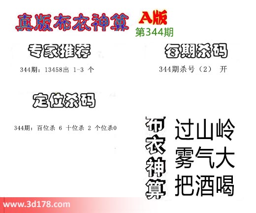 3d布衣神算第344期定位杀码: