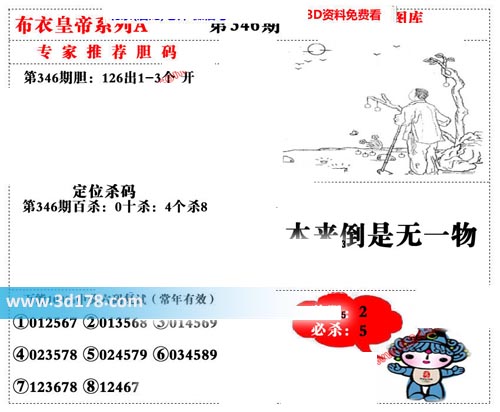 福彩3d第2019346期布衣皇帝A版布衣专家独家推荐:
