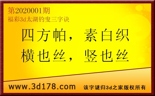 3d第20001期太湖字谜:四方帕,素白织,横也丝,竖也丝