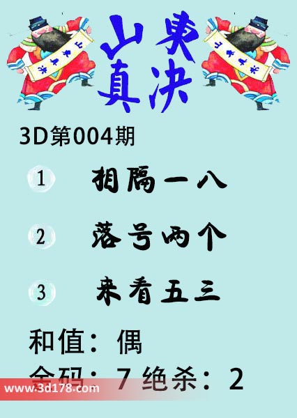 福彩3d第20004期山东真诀图如下所示: