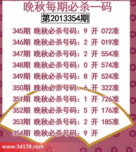 353期 晚秋必杀号码:2 开 185准
