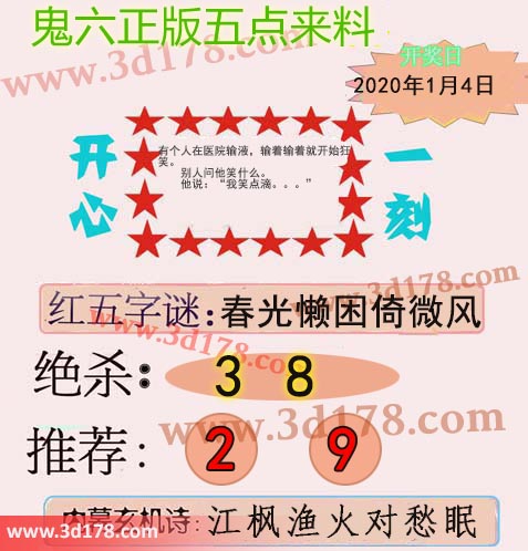 福彩3d第2020004期鬼六五点来料:
