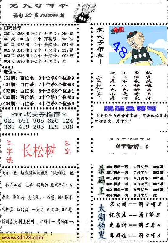 福彩3d第2020004期老夫子布衣图详情:
