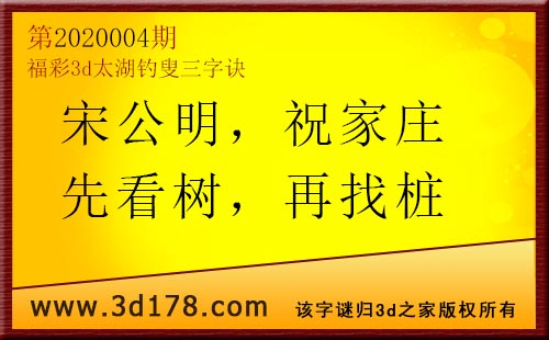 3d第20004太湖字谜:宋公明,祝家庄,先看树,再找桩