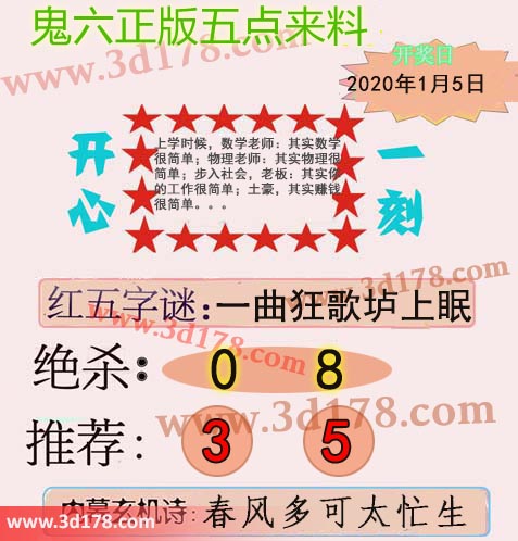 福彩3d第2020005期鬼六五点来料: