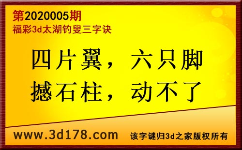 3d第20005太湖字谜:四片翼,六只脚,撼石柱,动不了
