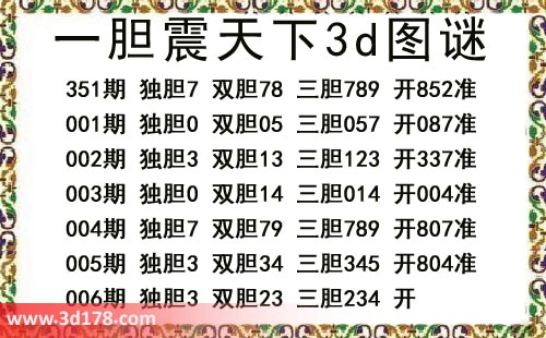 本期一胆震天下3d图谜: