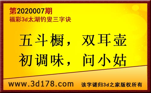 3d第20007太湖字谜:五斗橱,双耳壶,初调味,问小姑