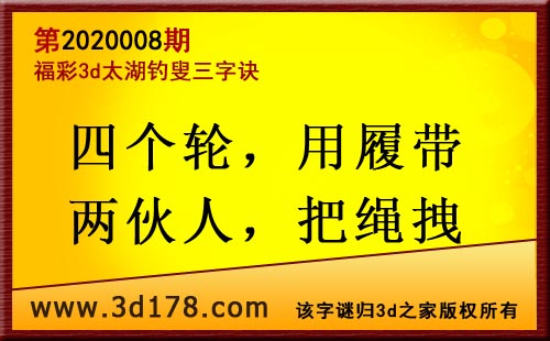 3d第20008太湖字谜:四个轮,用履带,两伙人,把绳拽