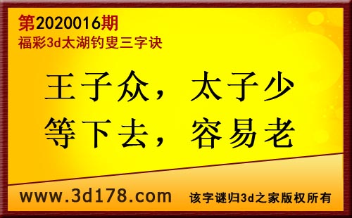 3d第20016太湖字谜:王子众,太子少,等下去,容易老