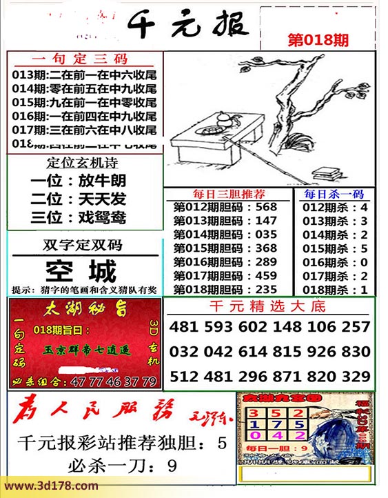 福彩3d布衣图库布衣千元报第2020018期定位玄机诗: