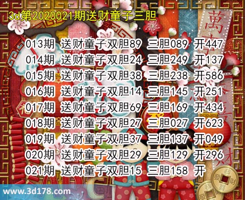 胆码图库3d第2020021期送财童子图: