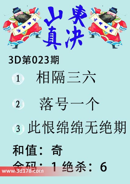 福彩3d第20023期山东真诀图如下所示:
