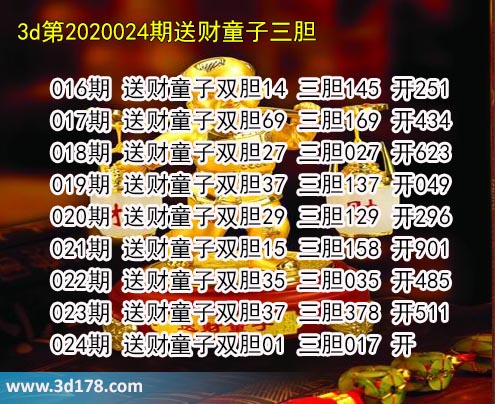 胆码图库3d第2020024期送财童子图: